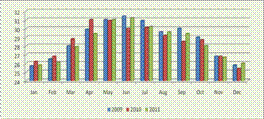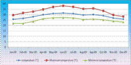 Cauveri deltaic region of Karaikal district experiences tropical maritime type of climate with small daily range of temperature and moderate rainfall. Karaikal district has an annual average rainfall of about 126 cm. The rsange of variation of annual rainfall is wide. December and January are the coolest months with the maximum at about 28°C and the minimum at about 23°C. Minimum temperature as low as 16°C may sometimes be recorded. The diurnal ranges of temperature are generally small throughout the year, being highest (about 10°C) in May and June, and the least (about 5°C) during November to February.